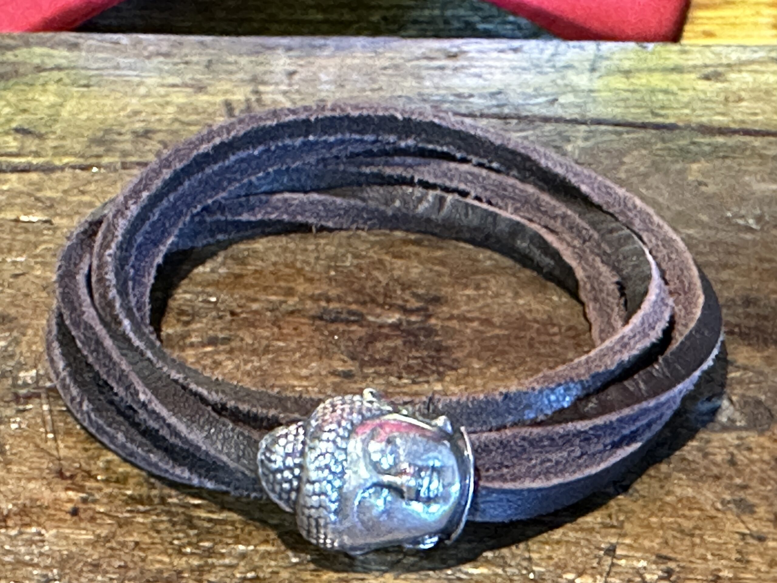 Wickel Lederarmband mit Buddha und Magnetverschluss.