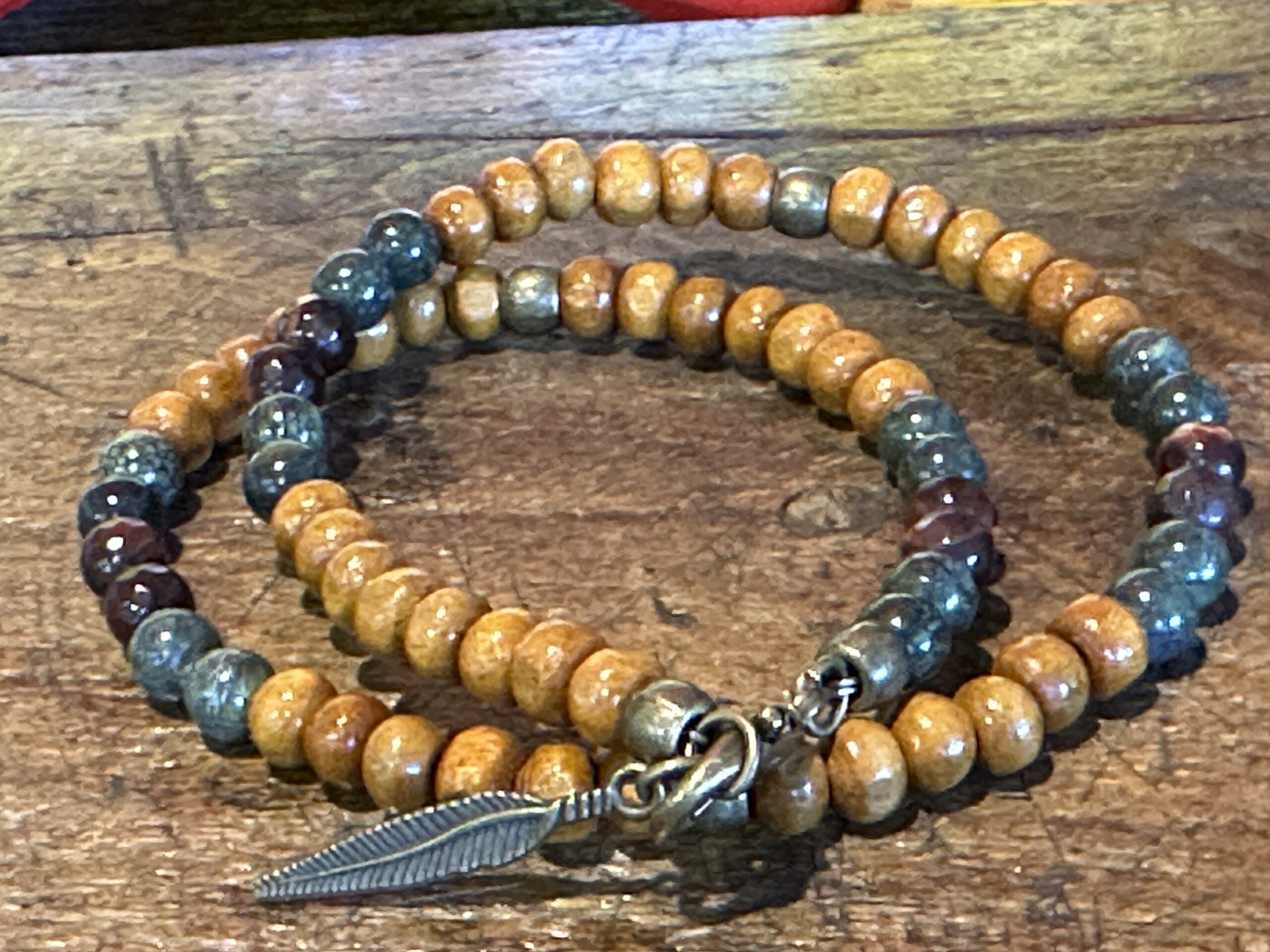 Wickel Armband Navajo mit Perlen und Messingverschluss.